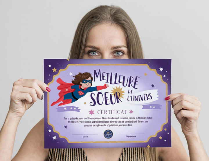 Certificat "Meilleure Sœur de l'Univers" - Un Cadeau Unique pour Honorer votre Sœur Exceptionnelle