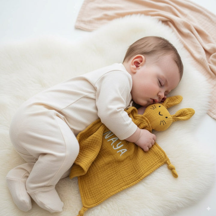 Doudou Lapin Personnalisé brodé – Gaze de coton douce, broderie prénom