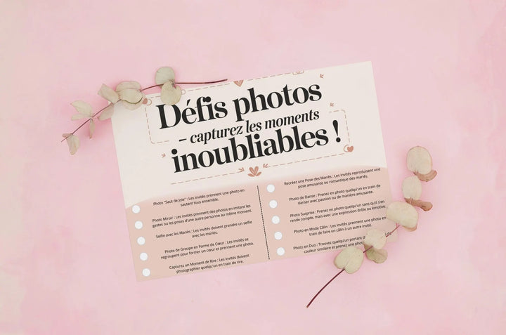 - Idéal pour Tous les Types d'Événements : Que ce soit pour un mariage, un anniversaire, une baby shower, ou une réunion de famille, ces défis photo apportent une touche spéciale et personnelle. 🌸