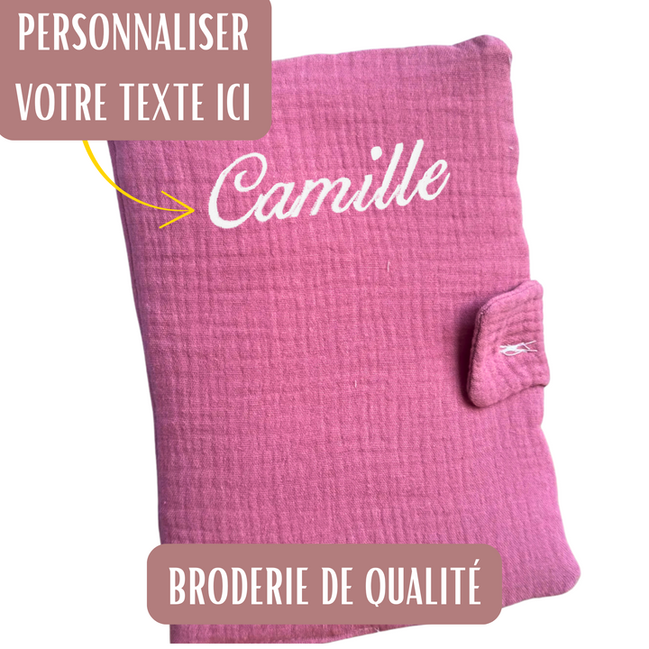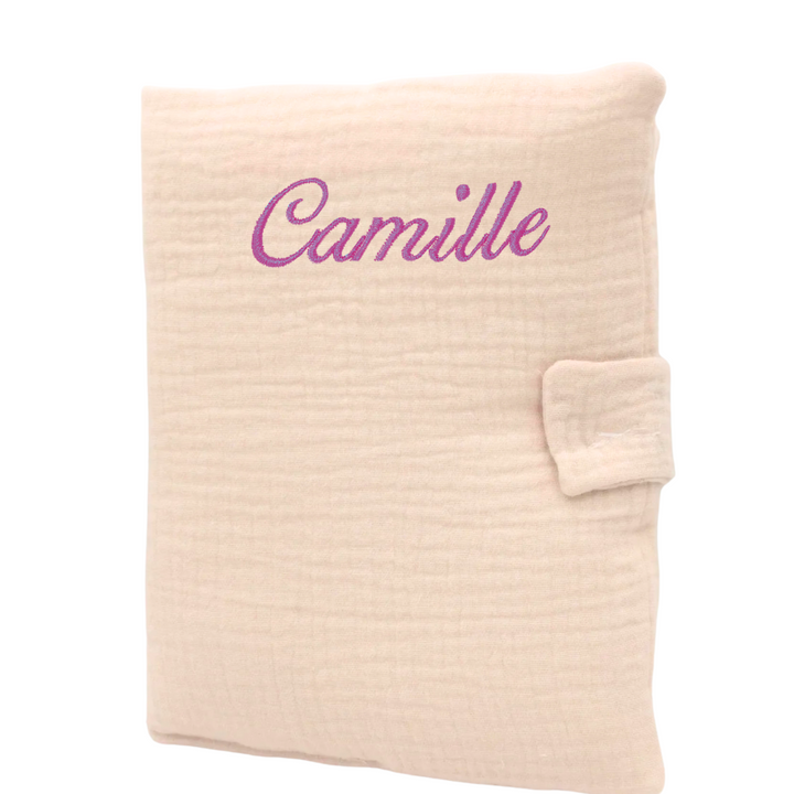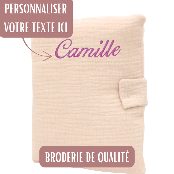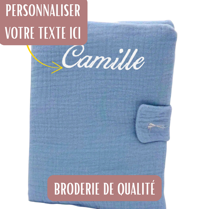 Protège carnet de santé personnalisé – broderie en gaze de coton