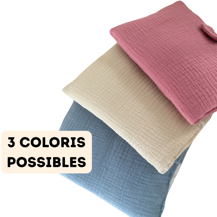 Protège carnet de santé personnalisé – broderie en gaze de coton Offrez au carnet de santé de votre enfant une housse douce, légère et chic, confectionnée en gaze de coton et...