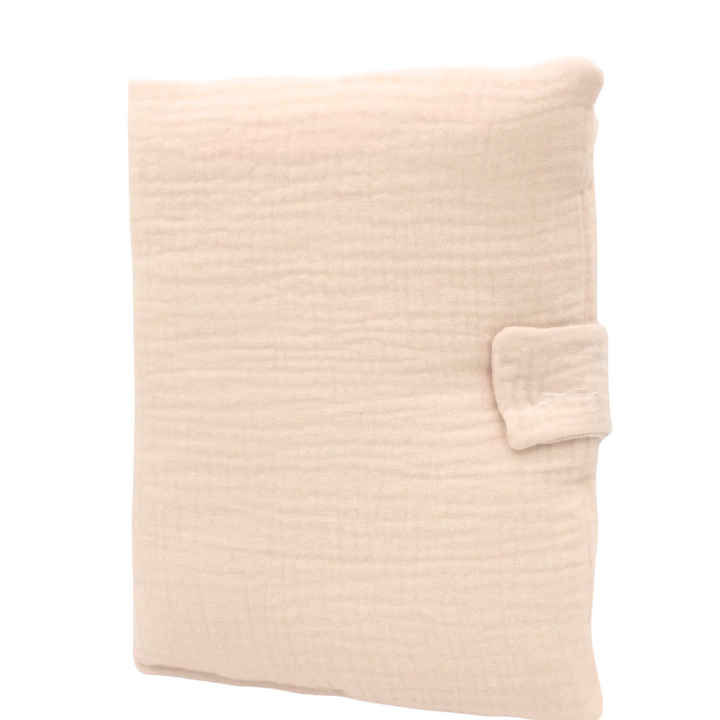 Offrez au carnet de santé de votre enfant une housse douce, légère et chic, confectionnée en gaze de coton et personnalisée par broderie au prénom. Conçue pour le format A5 (15×21 cm) du carnet de santé français. Disponible en 3 coloris : Bleu brume, Beige sable, Rose poudré.